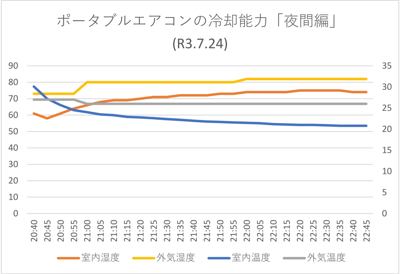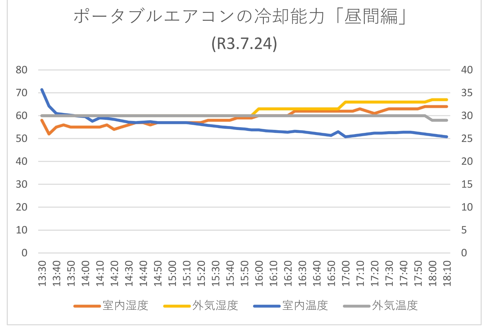 令和3年7月24日(土)、ポータブルエアコンの冷却能力を検証。『昼間編』『夜間編』の2部構成で最終報告する。