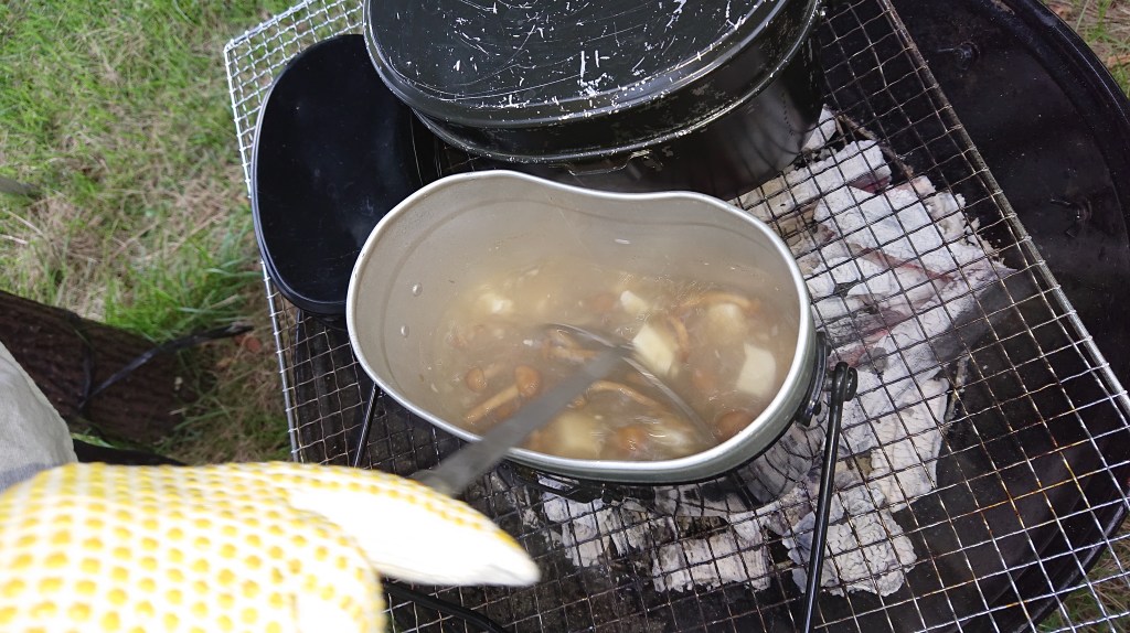 なめ茸と豆腐の味噌汁!飯ごう炊飯の二丁がけ!