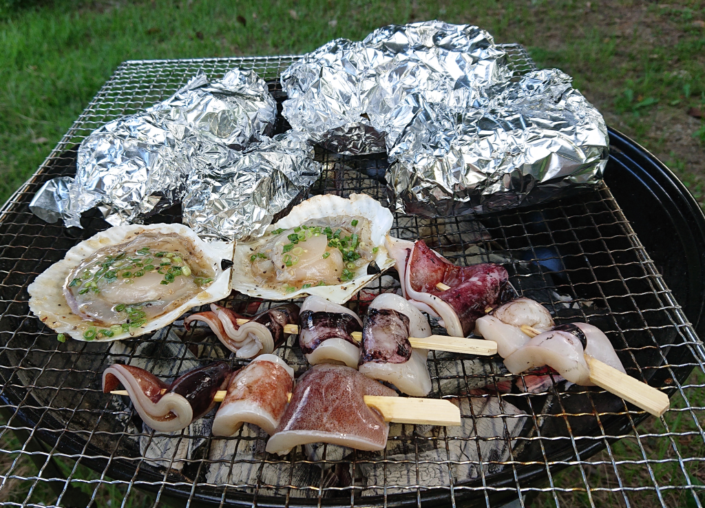 Up主の番。海鮮焼きと野菜は全てホイール焼き!