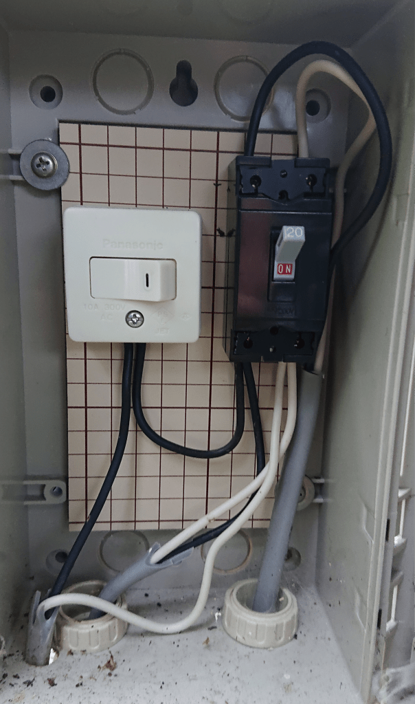 電源は20A,ウォータープルーフコンセント!