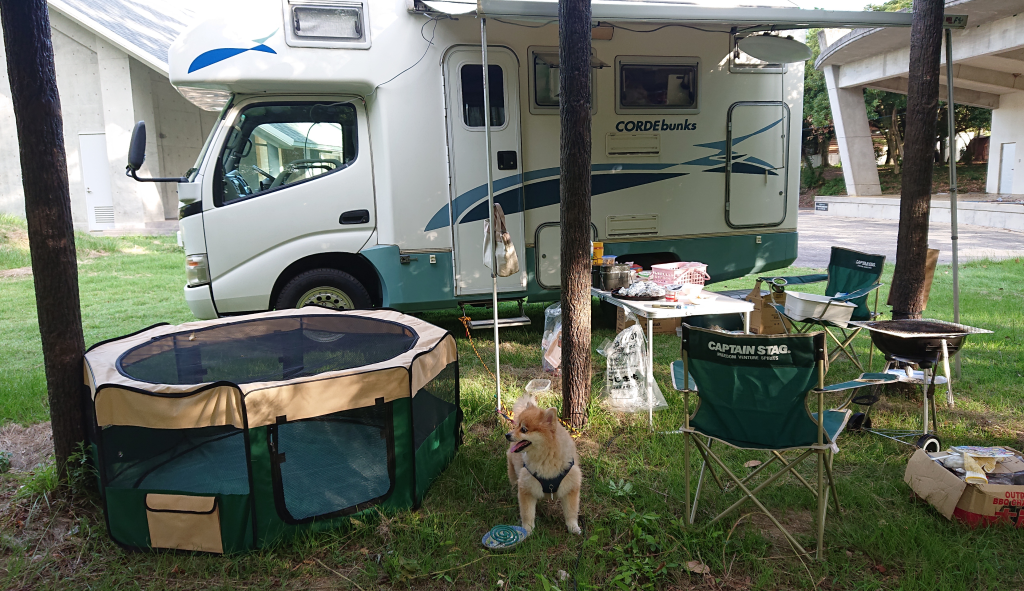 久しぶりのキャンプでペペはニコニコ!