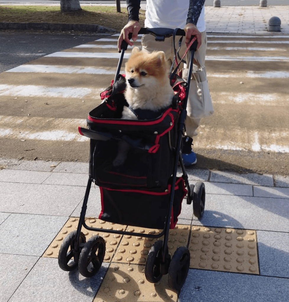 高齢犬?なので、見学にはキャリイカーは欠かせない!
