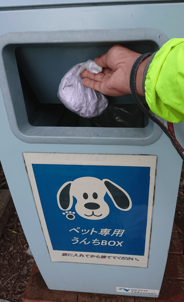 💩を捨てるビニール袋が設置されているほか、💩を捨てる専用ボックスまであり、施設運営者の心意気を感じる!(いいね)