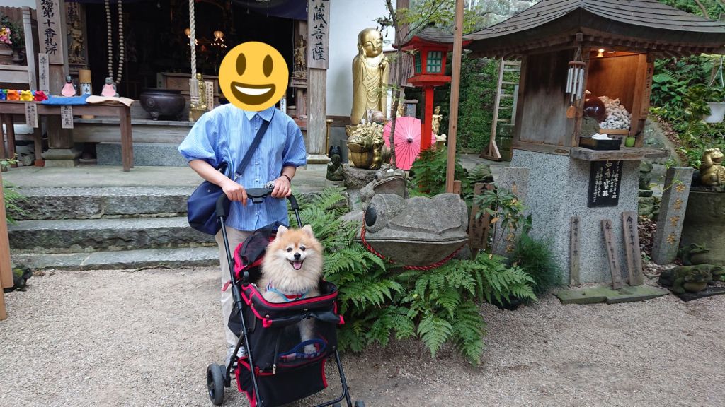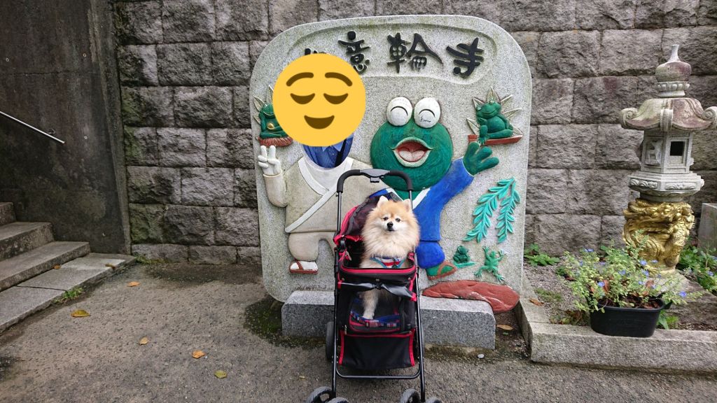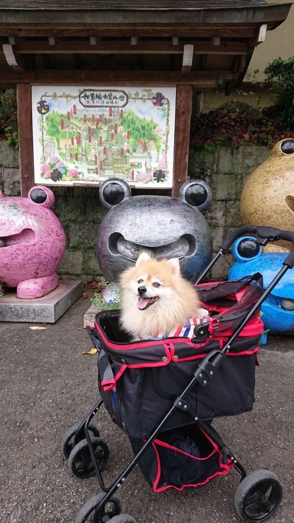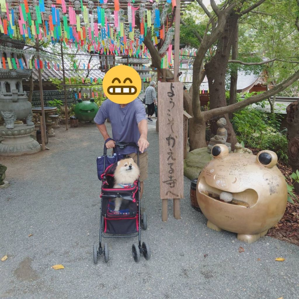 犬連れでの散策も可能で、境内の石畳や小道を一緒に歩くと、ポメラニアンも興味津々に周囲を眺めていました。カラフルなカエルのオブジェは写真映え抜群で、観光客も思わずシャッターを切るスポットばかり。人の姿も多かったのですが、犬と一緒に歩いていると自然と声をかけてもらえ、旅の良い思い出になりました。