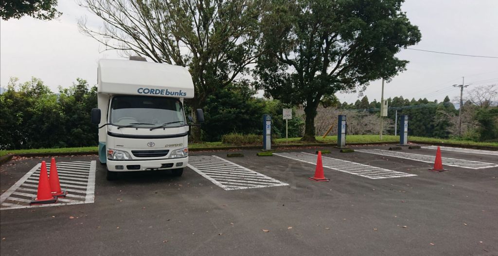 この日の宿泊地は、RVパーク やぶさめの里。自然に囲まれた公園のなかにあるRVパークで、静かに車中泊ができました。