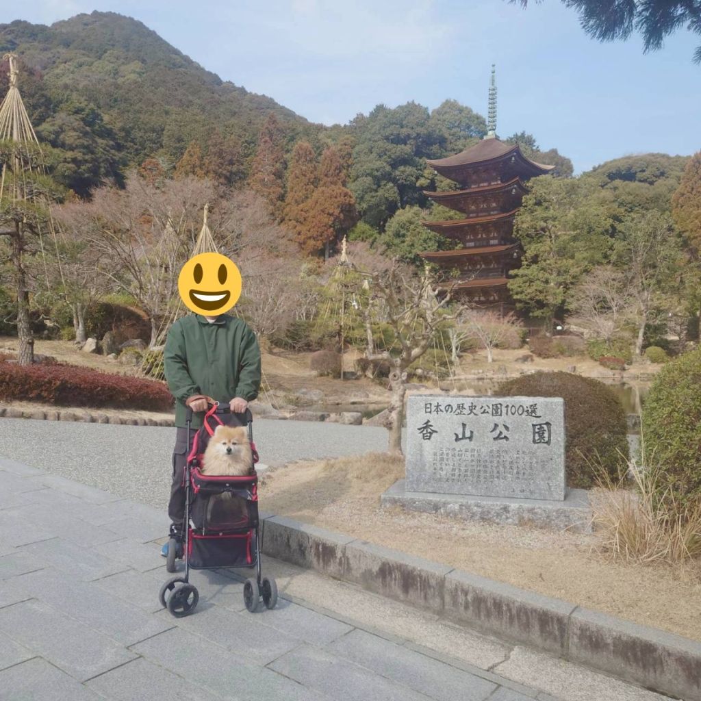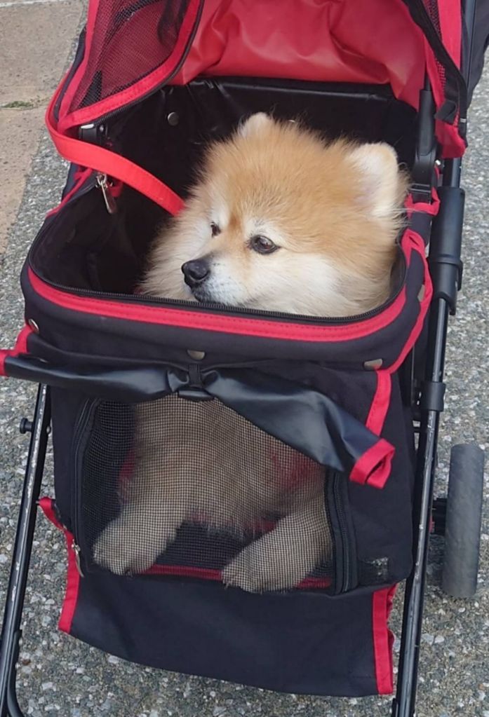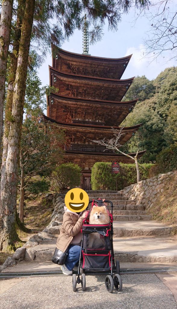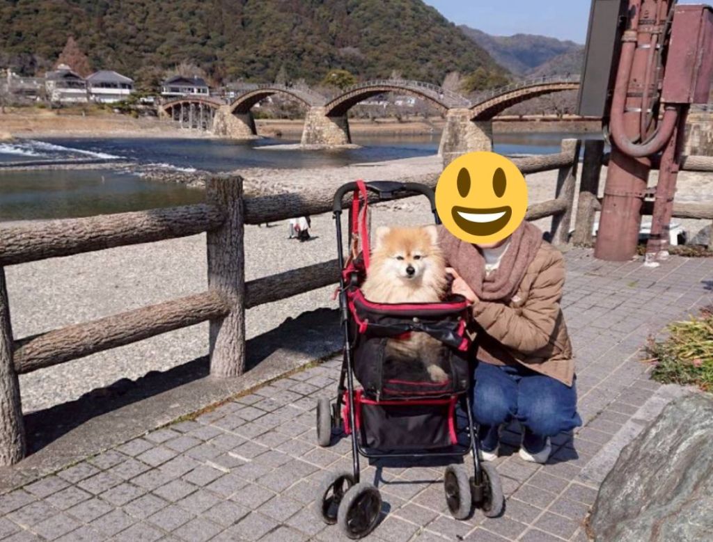 境内はペット同伴OKですが、愛犬はキャリーカーに乗せて観光しました。