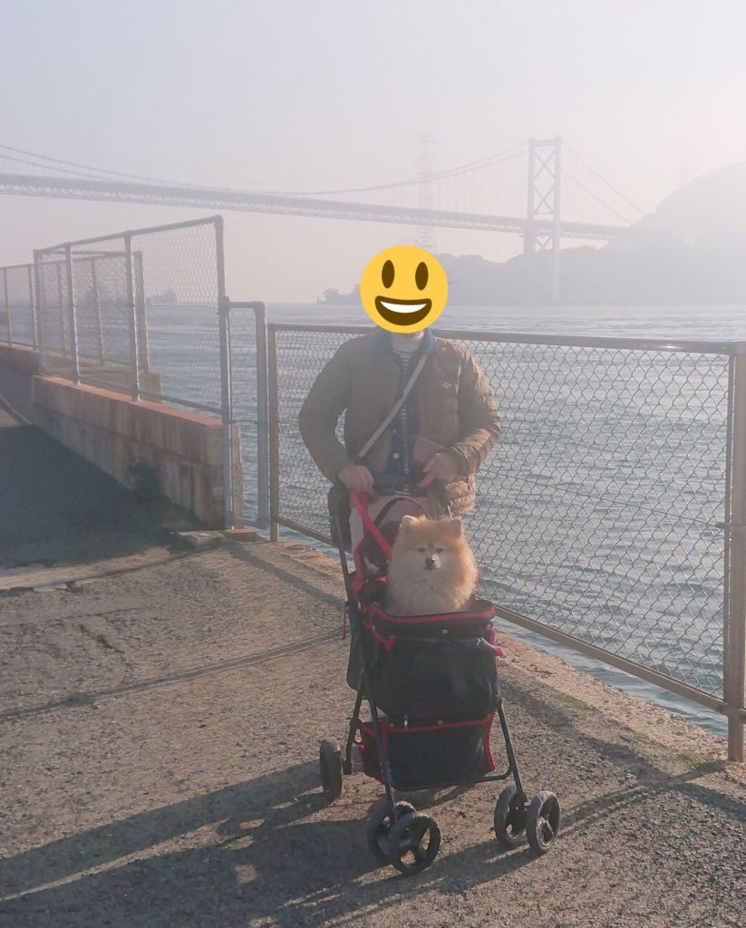到着後、愛犬と一緒に橋の周辺をゆっくり散策。